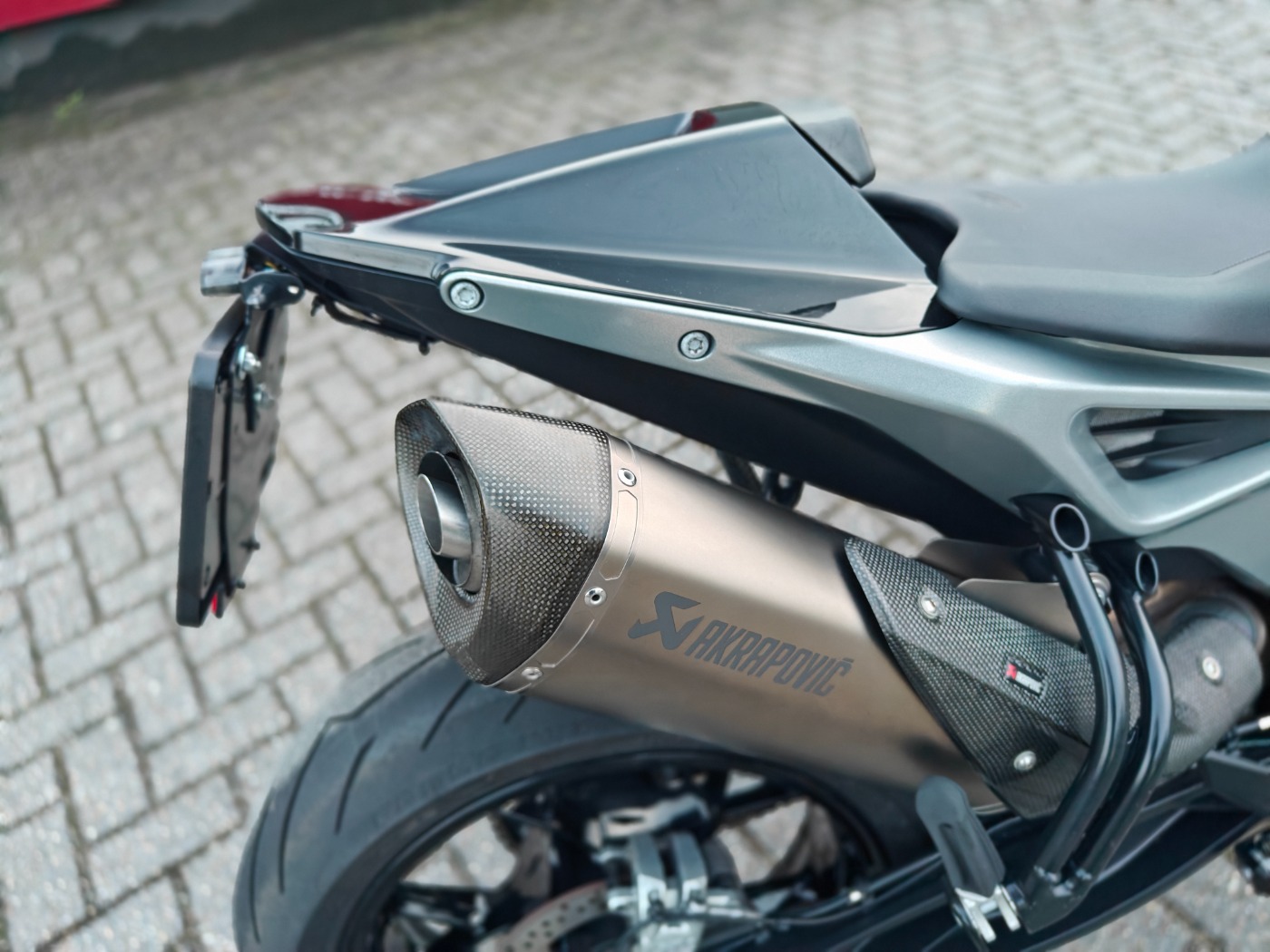 met seat cover, akrapovic uitlaat,korte plaathouder, stuurspiegels, alu hendels enz