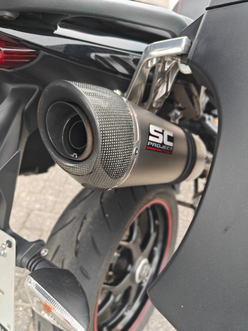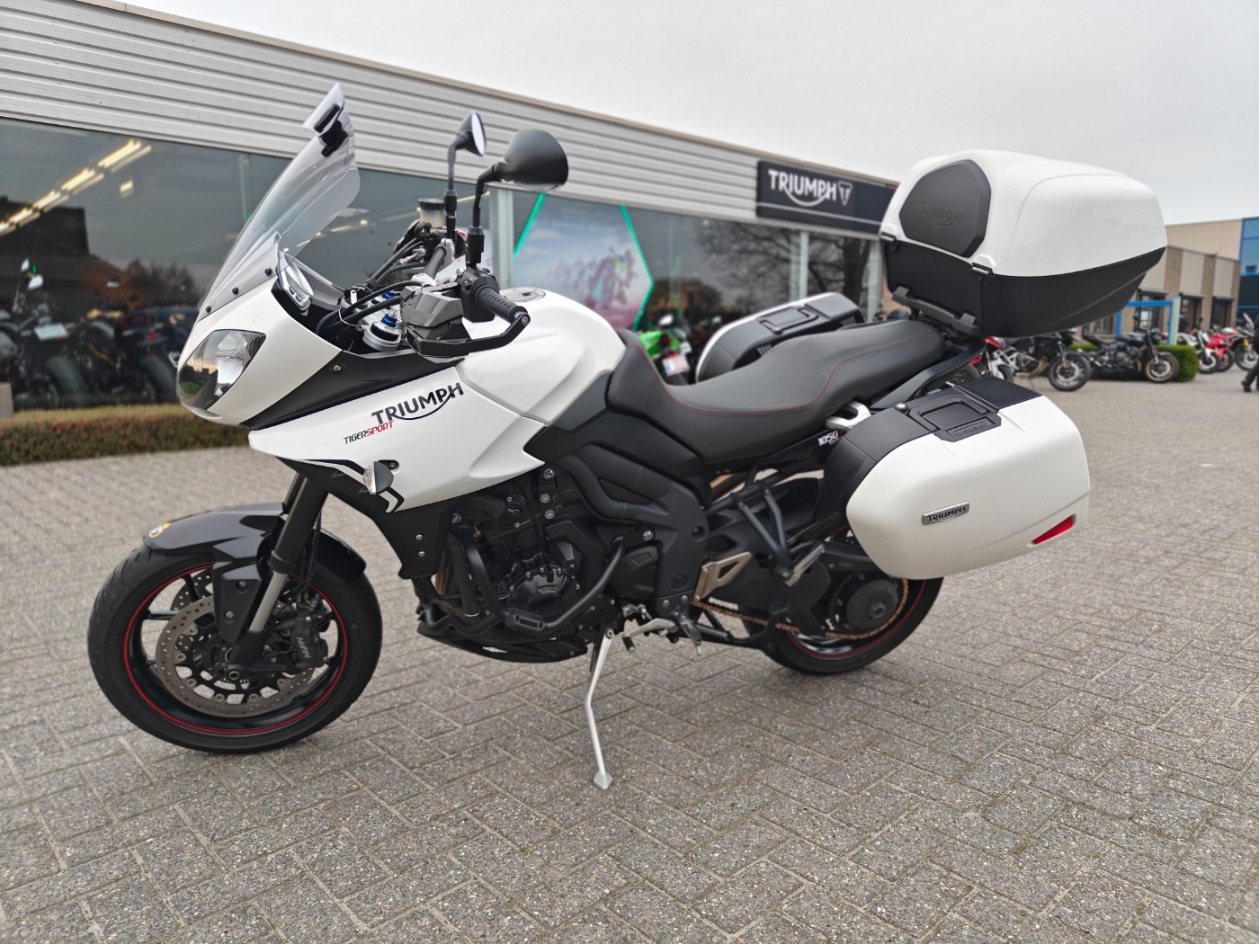 Heel mooie Tiger Sport 1050 met veel opties zoals, SC Project uitlaat, 3kofferset, valbaren , handkappen,middenbok enz