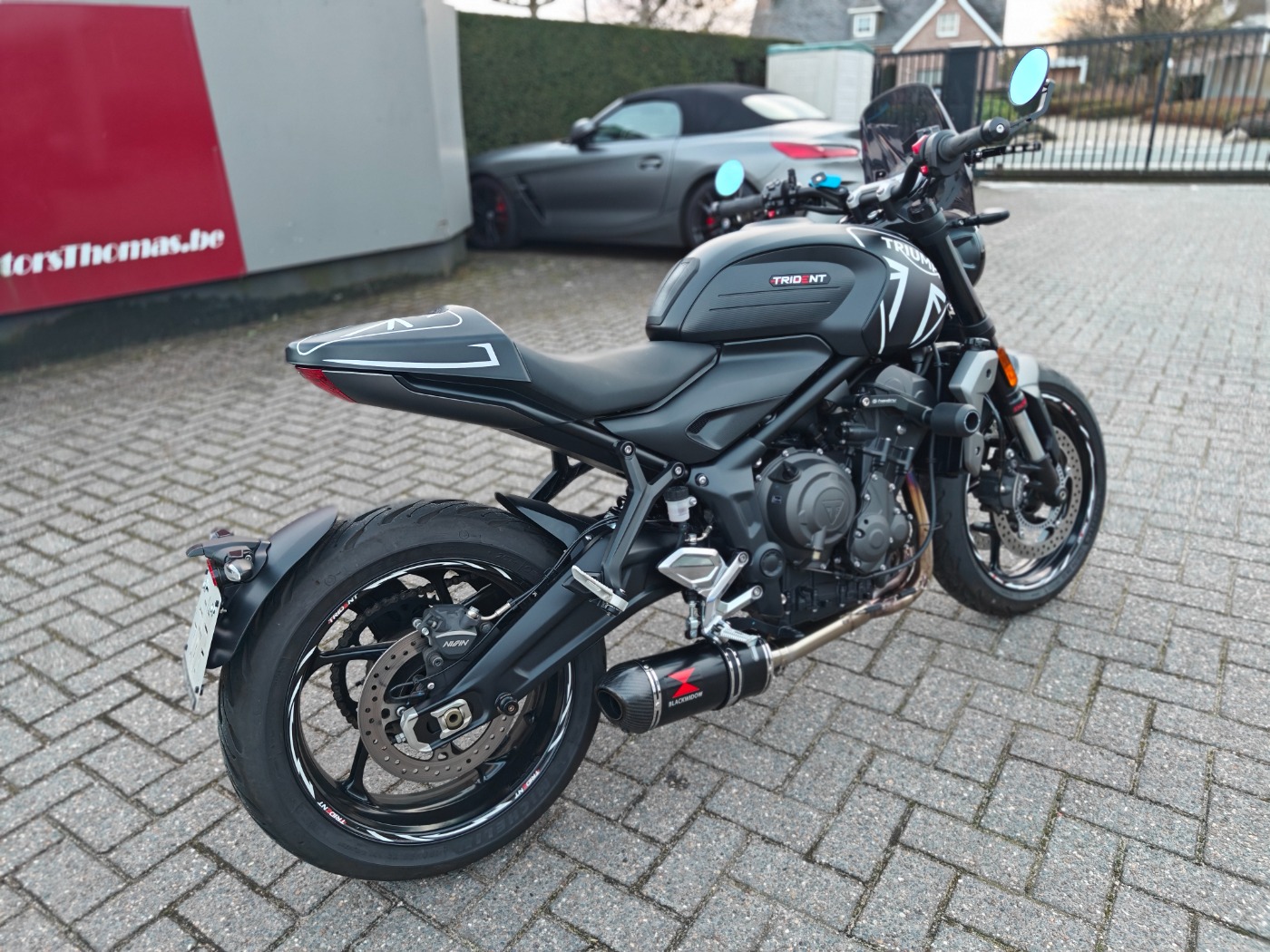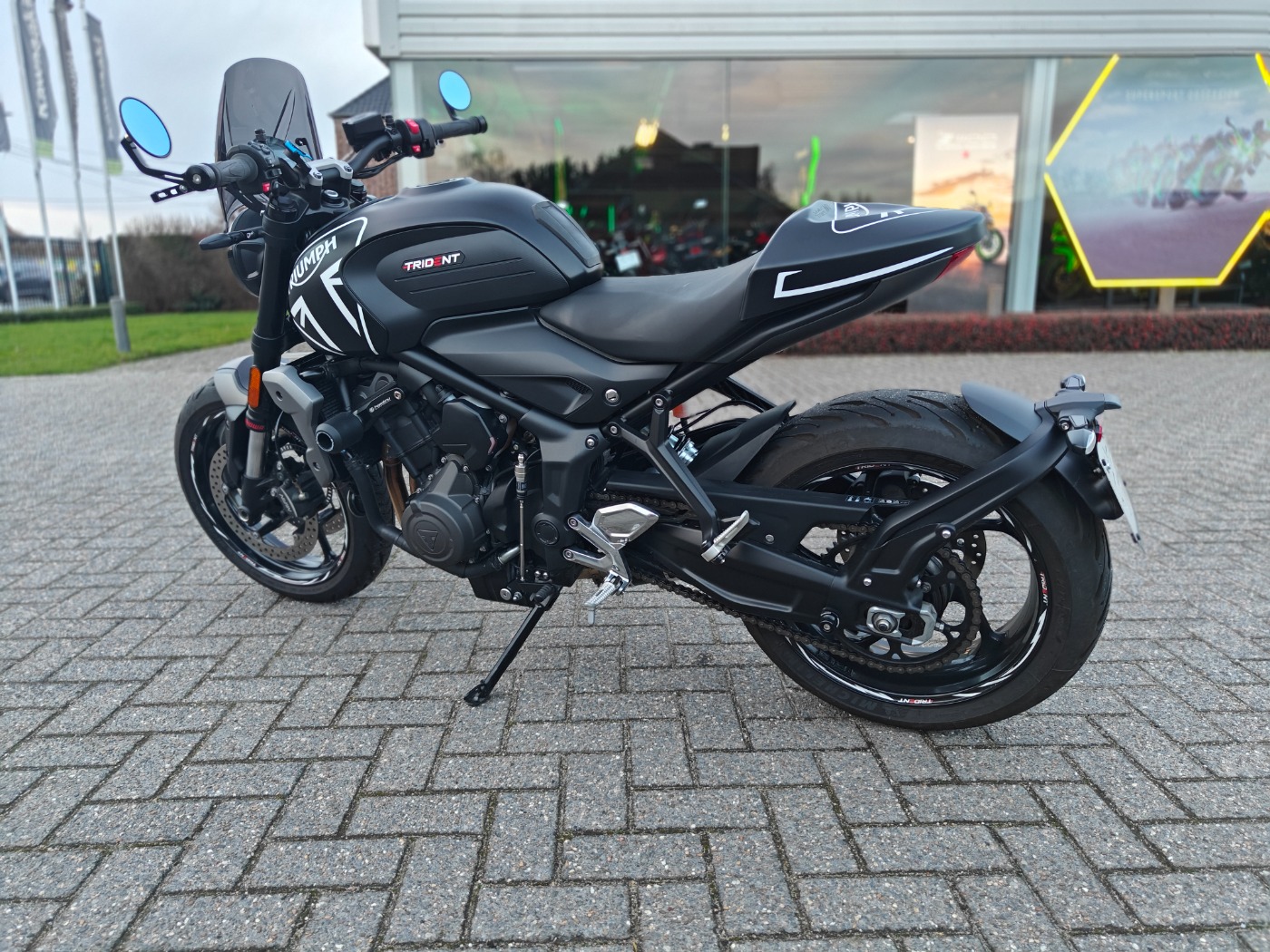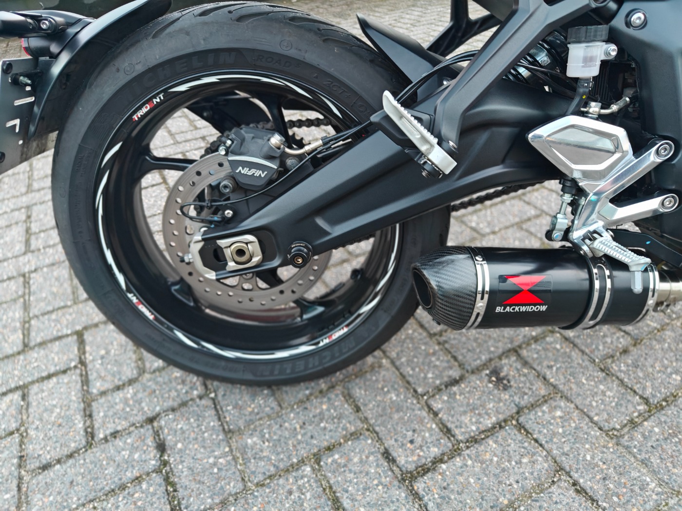met volledige uitlaatlijn, quickshifter, seat cover,windscherm, alu rem en koppelingshendel,valblokken, motor is 3cm verlaagd, stuurspiegels